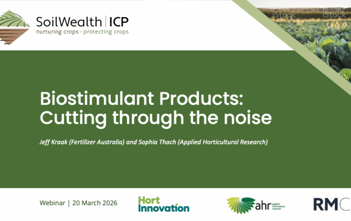 Join Soil Wealth ICP crop nutrition experts Dr Doris Blaesing and Camilla Humphries (RMCG) for this webinar targeted at vegetable growers, agronomists and advisers. Find out the key site and crop specific aspects...